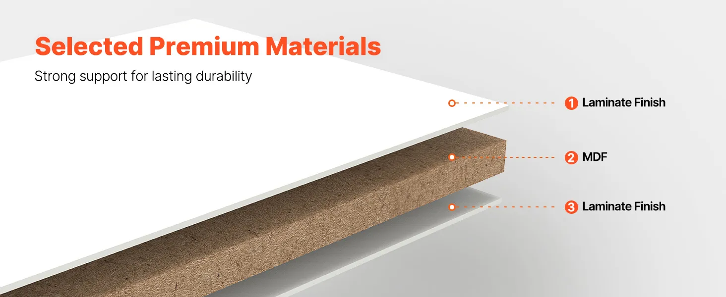 Materiali di alta qualità: il piano del tavolo è realizzato con una combinazione di MDF e finitura laminata, che non solo gli conferisce un aspetto elegante ed estetico, ma fornisce anche eccezionali caratteristiche funzionali