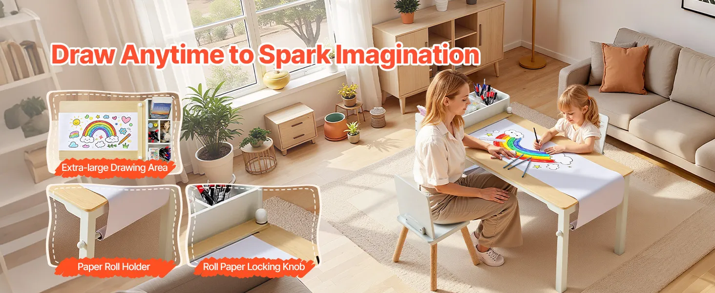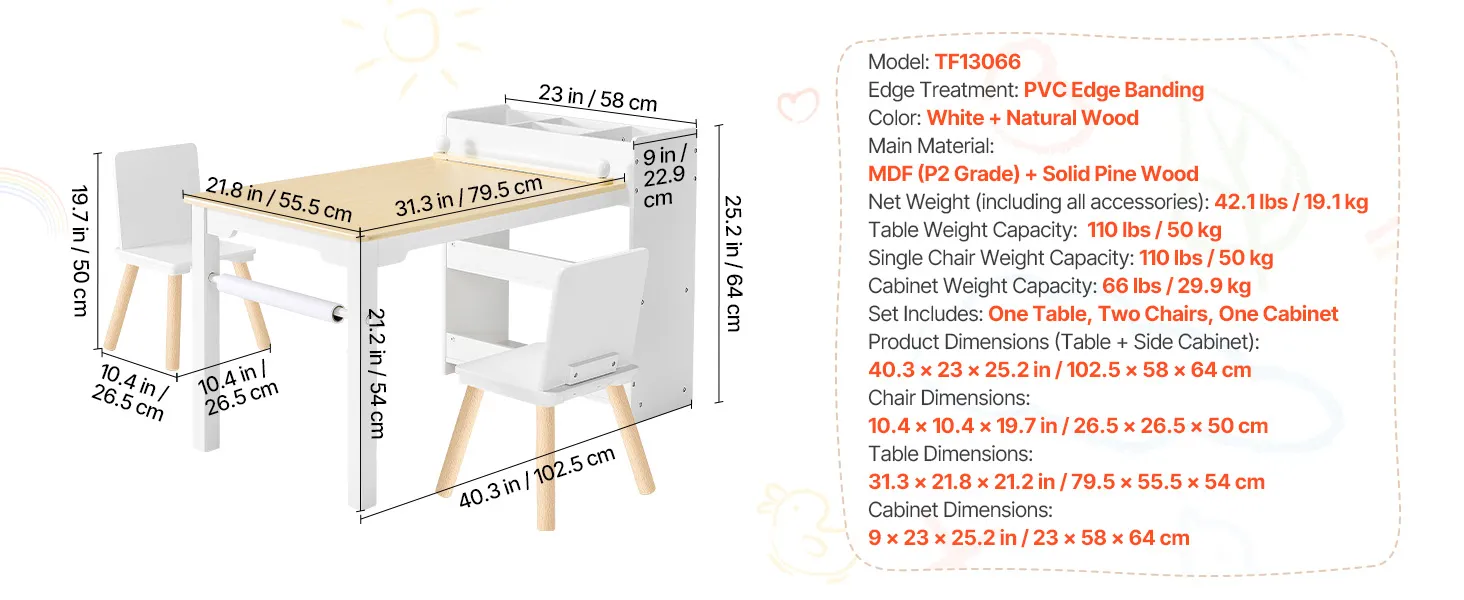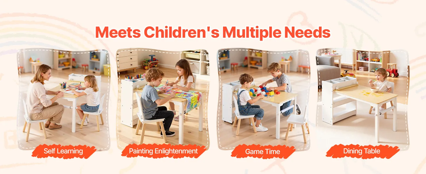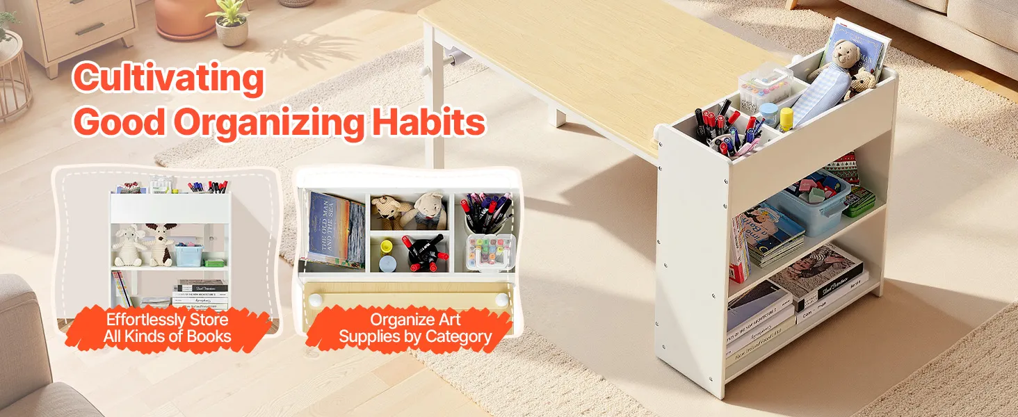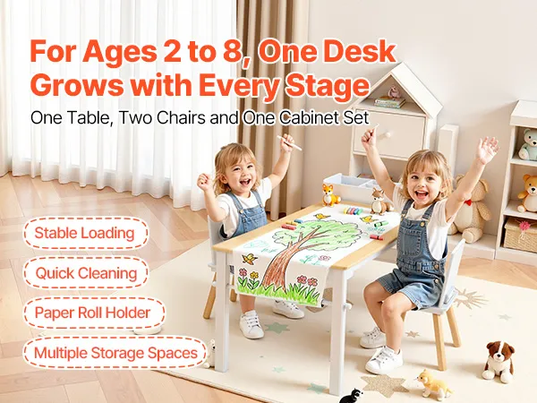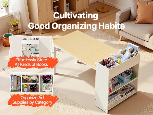 Molteplici opzioni di archiviazione: il tavolo da disegno per bambini con mobiletto integrato offre facile accesso e organizzazione ottimale, per un'esperienza di archiviazione pratica e divertente
