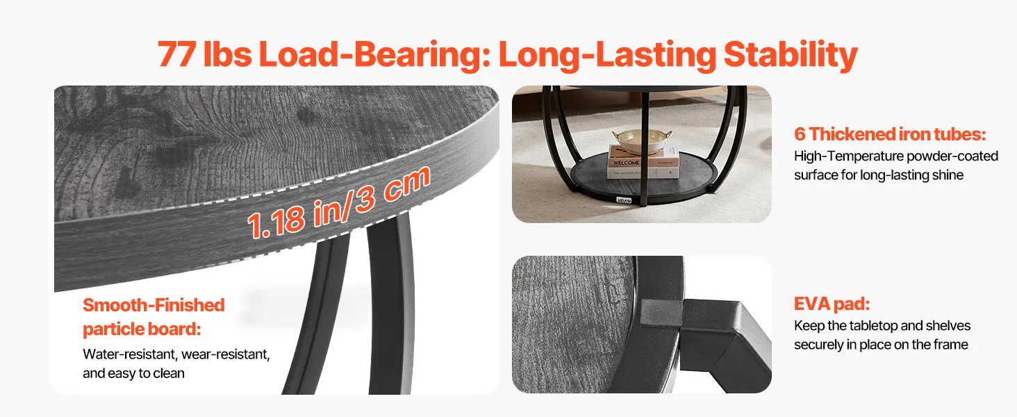 Il nostro tavolino da caffè in metallo con piano in truciolato liscio è durevole e impermeabile. I suoi tubi sono resistenti alla pressione e alla deformazione. Grazie alla finitura in smalto cotto, è resistente alla ruggine e alla corrosione.