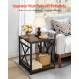 VEVOR Tavolino da Divano con 2 Ripiano Quadrato con Ripiani Aperti, Comodino Moderno con Struttura in Metallo a X, Scrivania in Legno per Soggiorno, Camera da Letto, Ufficio, Dormitorio, Marrone