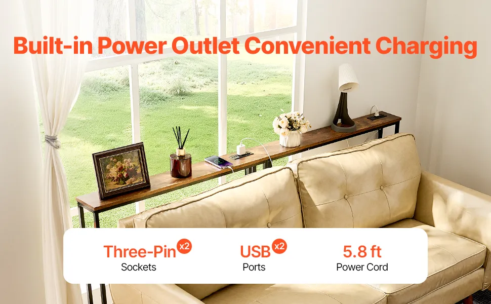 Prese integrate comode: il nostro tavolo dietro il divano ha 2 prese a tre poli, 2 porte USB e un cavo di alimentazione da 70 pollici. Puoi caricare rapidamente il tuo telefono, alimentare lampade, laptop e altri dispositivi, rendendo le tue routine quotidiane molto più comode