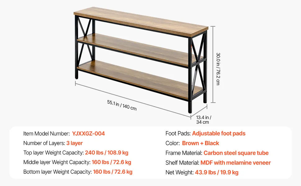 VEVOR Tavolo Stretto Dietro Divano, Tavolino da Ingresso Lungo a 3 Livelli e Tavola da Corridoio Sottile, con Struttura in Metallo, per Ingresso, Corridoio, Soggiorno, 140 x 34 x 76,2 cm