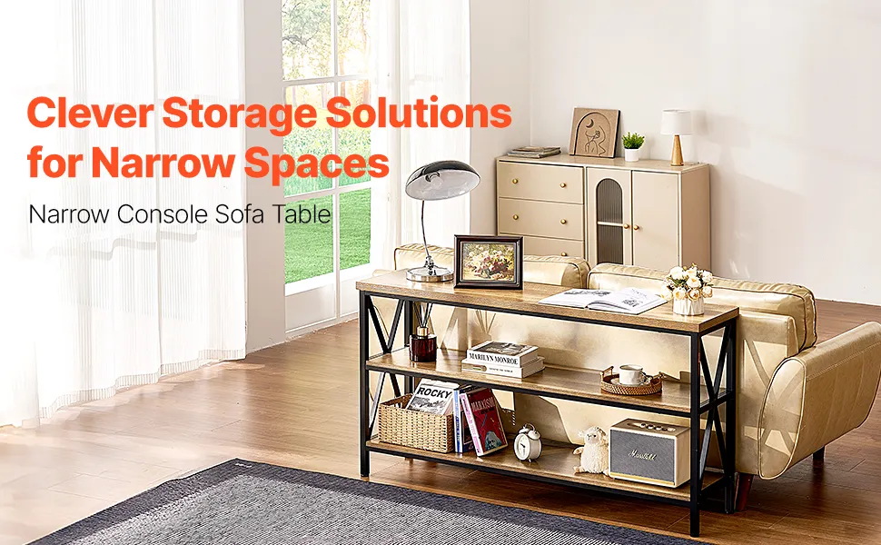 Stanco di angoli inutilizzati? Questo stretto tavolo da divano consolle si adatta perfettamente a spazi ristretti, offrendo spazio per telefoni, decorazioni, chiavi, cappelli e altro ancora, rendendo la tua vita quotidiana più organizzata e comoda.