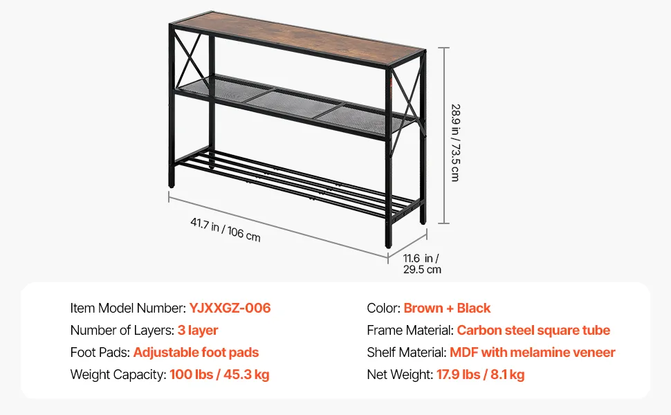 VEVOR Tavolo Stretto Dietro Divano, Tavolino da Ingresso Lungo a 3 Livelli e Tavola da Corridoio Sottile, con Struttura in Metallo, per Ingresso, Corridoio, Soggiorno, 106 x 29,5 x 73,5 cm