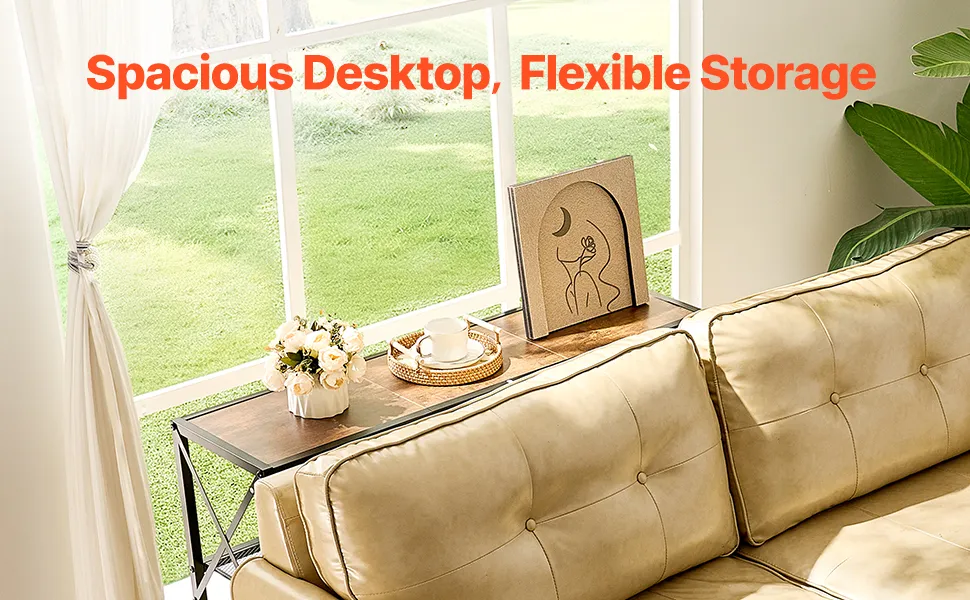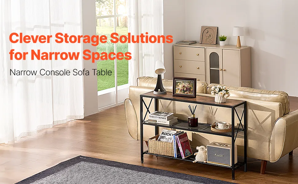 Stanco di angoli inutilizzati? Questo stretto tavolo da divano consolle si adatta perfettamente a spazi ristretti, offrendo spazio per telefoni, decorazioni, chiavi, cappelli e altro ancora, rendendo la tua vita quotidiana più organizzata e comoda.