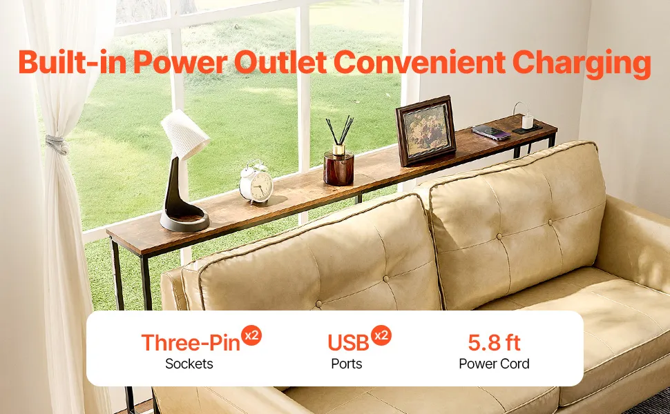 Prese integrate comode: il nostro tavolo dietro il divano ha 2 prese a tre poli, 2 porte USB e un cavo di alimentazione da 70 pollici. Puoi caricare rapidamente il tuo telefono, alimentare lampade, laptop e altri dispositivi, rendendo le tue routine quotidiane molto più comode