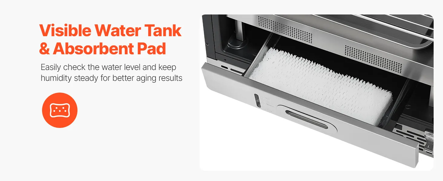 Con l'armadio di frollatura da 45 kg, gli amanti della carne possono ottenere risultati di frollatura professionali a casa propria. Grazie al controllo preciso di temperatura e umidità, crea l'ambiente perfetto per la frollatura di manzo, maiale, agnello e altre carni.