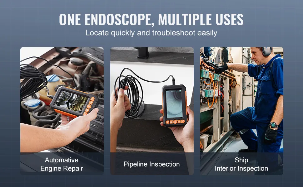 Questo endoscopio non è adatto solo a un tipo di lavoro. È specializzato per molteplici compiti. È ideale per ispezioni di motori di automobili, camere di combustione, impianti idraulici e pareti di edifici. Il cavo flessibile e la sonda impermeabile lo rendono adatto a molteplici utilizzi.