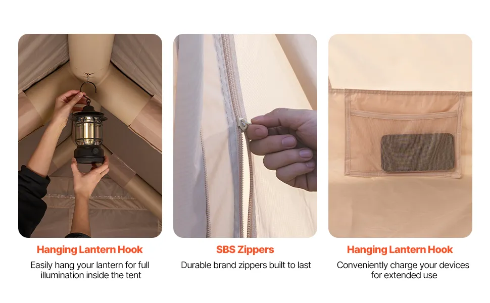 Dotata di una pompa ad aria ad alta pressione da 1500 CC e 29 PSI, questa tenda da campeggio gonfiabile può essere completamente montata in soli 10-15 minuti. Di' addio alla seccatura delle tradizionali installazioni a palo.