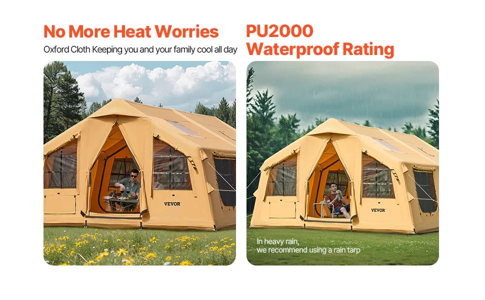 Durevole e resistente alle intemperie: realizzata in tessuto Oxford di alta qualità, la tettoia di questa tenda gonfiabile blocca la luce solare dannosa e ha una classificazione di impermeabilità PU2000, mantenendoti asciutto durante la pioggia leggera