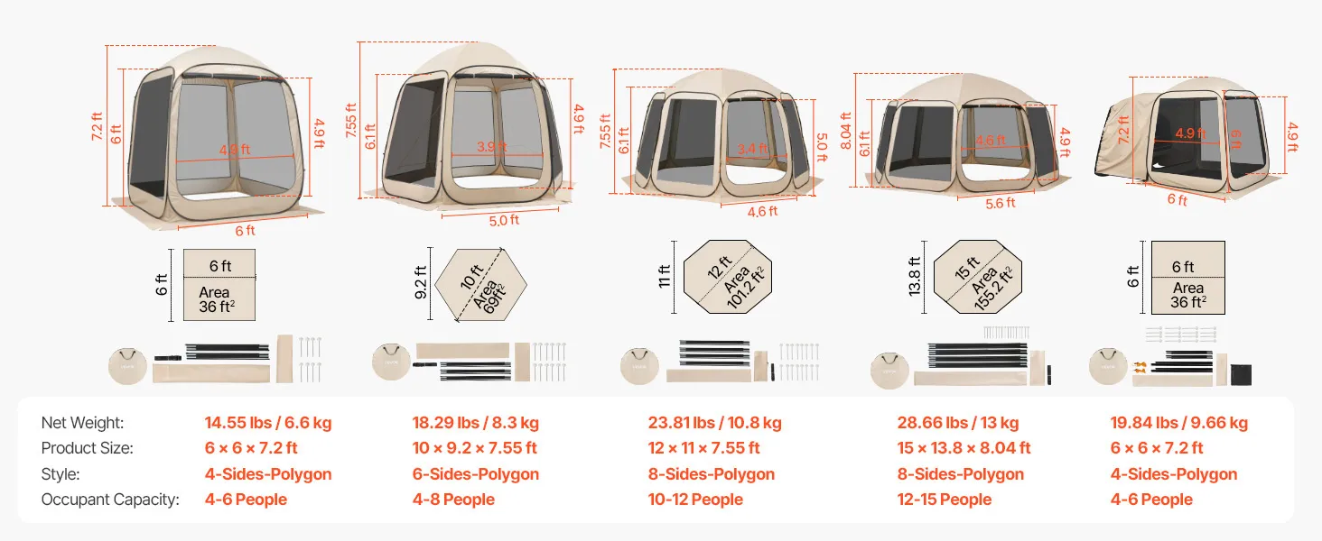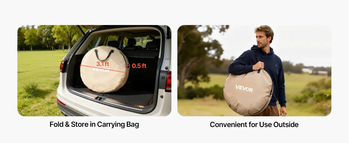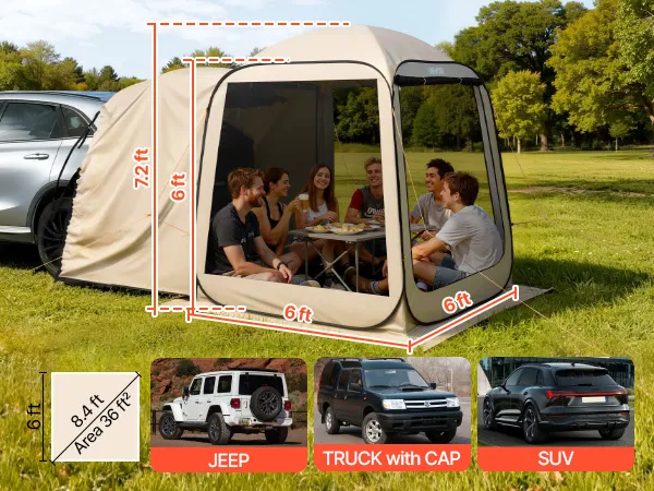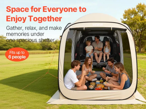 Con una spaziosa superficie di 1,8 x 1,8 metri, questa tenda a scomparsa può ospitare fino a 6 persone. Puoi usarla come tenda da picnic o fissarla all'auto per creare più ombra e spazio.