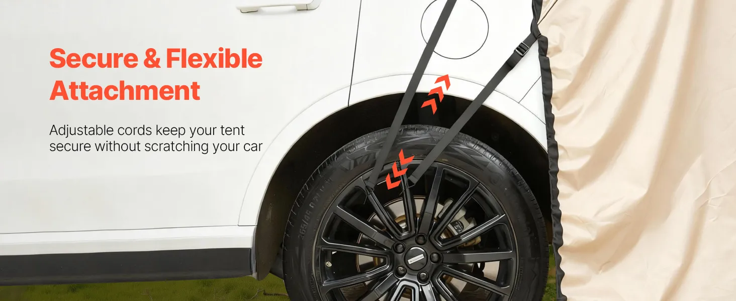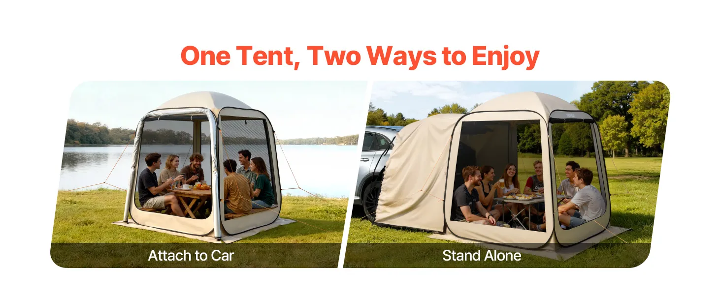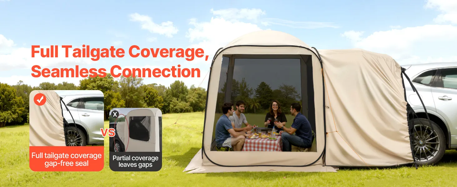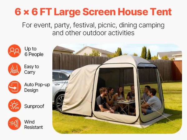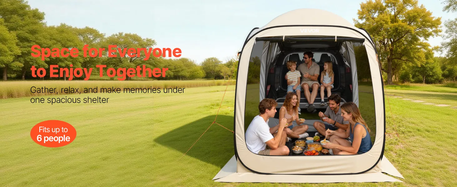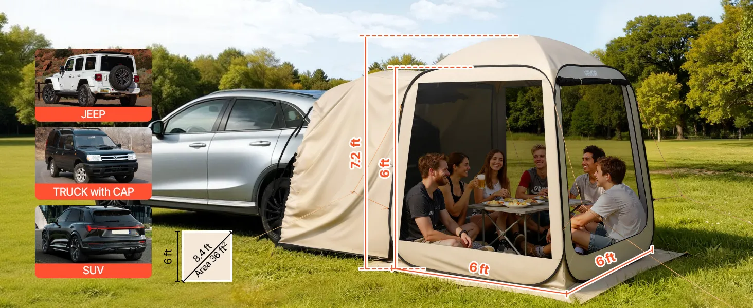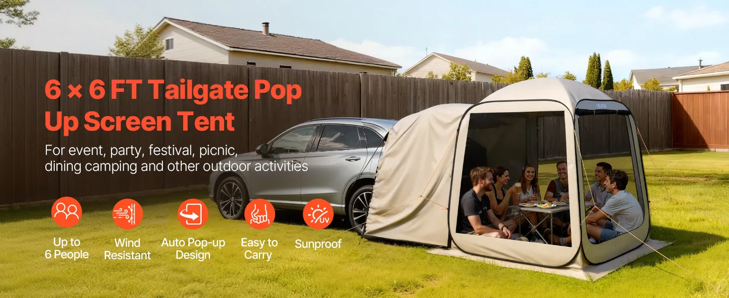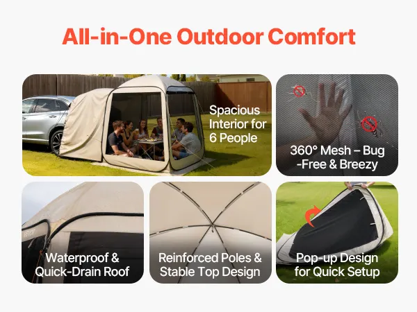 VEVOR Tenda da Campeggio da 1825 x 1825 x 2200 mm, Tenda da Portellone Posteriore per SUV da 4-6 Persone, con Zanzariera e Borsa per il Trasporto, Lati in Rete, per Giardino, Attività all'Aperto