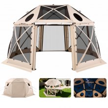 VEVOR Tenda con Tettoia da Campeggio a 8 Lati Carico di 23,4 kg con Parte Superiore Rimovibile e Borsa per il Trasporto, Montaggio Rapido e Anti-Morsi, Riparo Solare per 12-15 Persone, Marrone