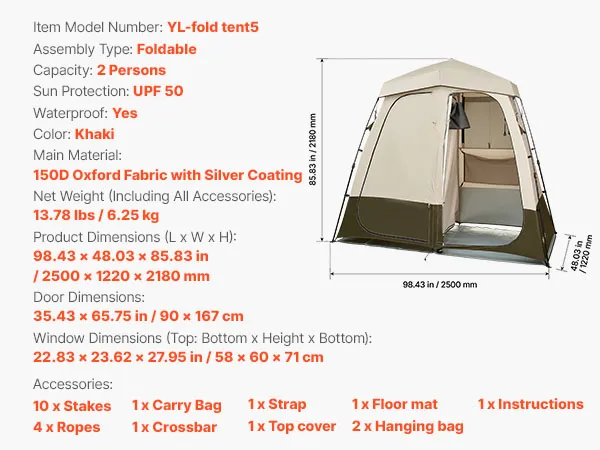 La nostra tenda da doccia da campeggio è realizzata con protezione solare UPF 50 e tessuto impermeabile PU2000 mm per bloccare il sole e la pioggia in spiaggia o in campeggio, mantenendo l'interno asciutto e confortevole.