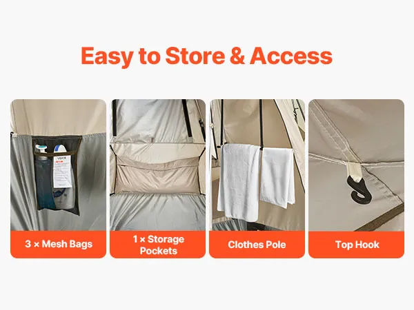 Molteplici opzioni di stoccaggio: questa tenda da doccia portatile offre la comodità di casa all'aperto. Lo stendibiancheria può appendere asciugamani e vestiti, il gancio superiore può contenere una luce o un soffione per la doccia