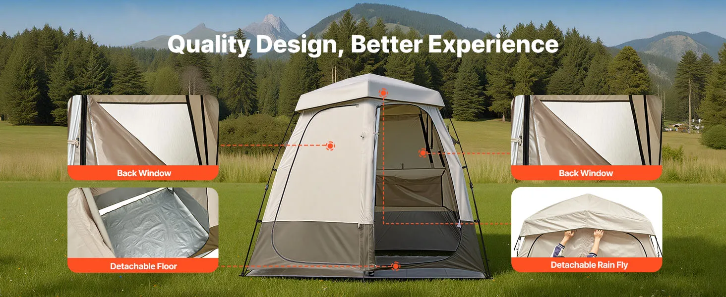 Protezione solare e resistenza all'acqua: realizzata in tessuto Oxford 150D con protezione UPF 50, la nostra tenda per la privacy blocca la luce solare intensa. Le finestre laterali migliorano il flusso d'aria
