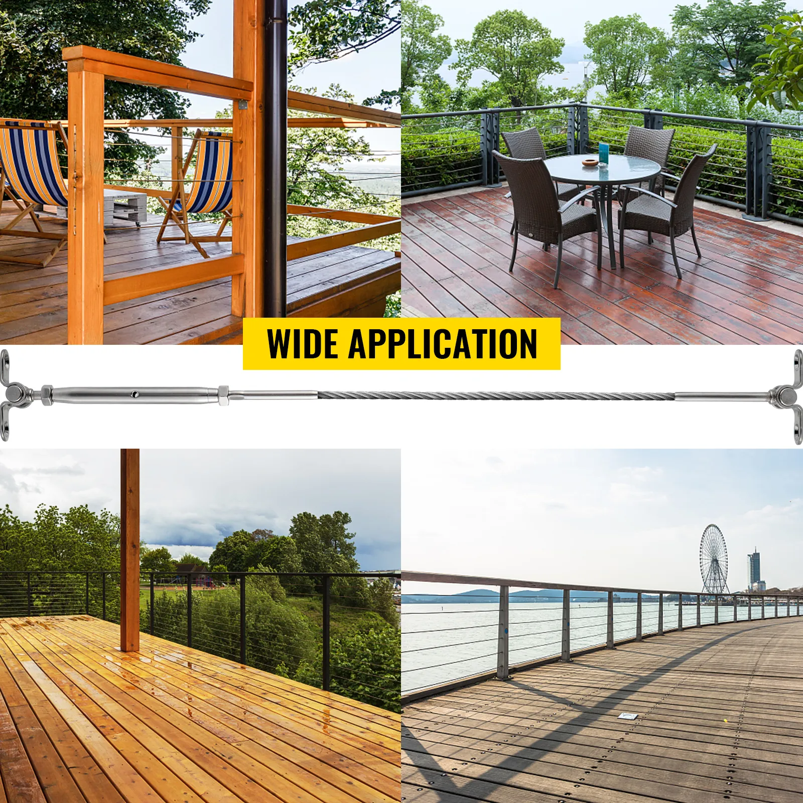 Questo sistema di kit di cavi per ringhiere in acciaio inossidabile include 10 set di raccordi hardware per ringhiere per cavi da ponte per adattarsi a cavi in acciaio inossidabile da 3,2 mm. Questa ringhiera metallica è facile da installare senza manutenzione. È eccellente per ringhiere per scale esterne e interne con qualsiasi angolazione per garantire la sicurezza.