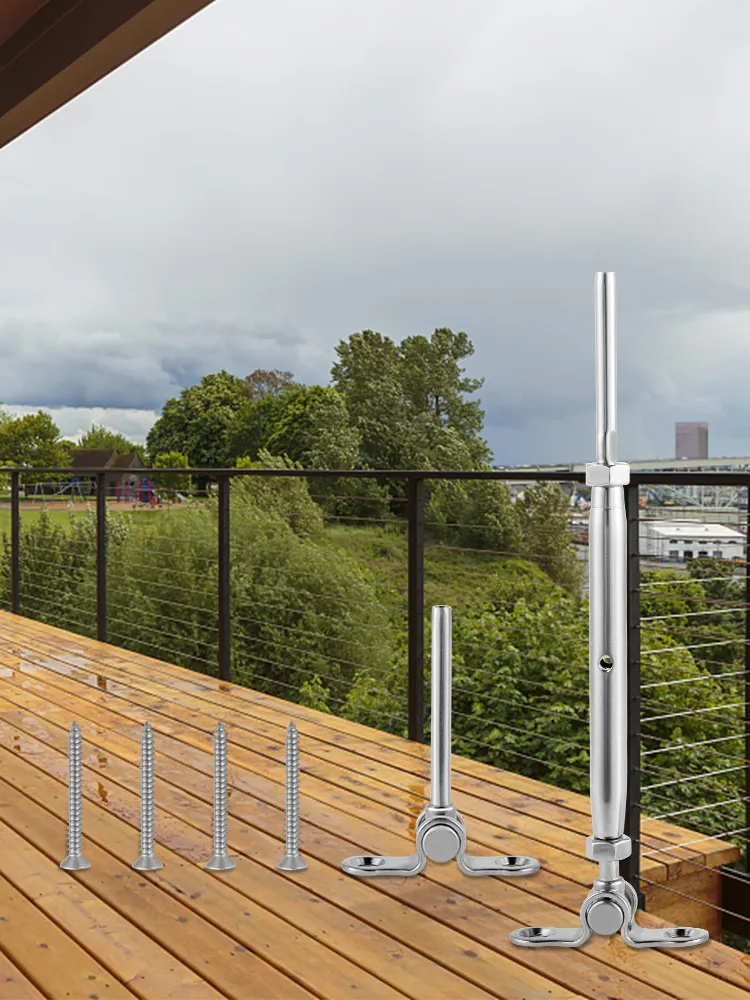 La ringhiera in filo è progettata con il tenditore a vite e un dado di ancoraggio per regolare la tenuta del cavo senza ulteriore tensione, risolvendo così il problema della torsione del filo attaccato.