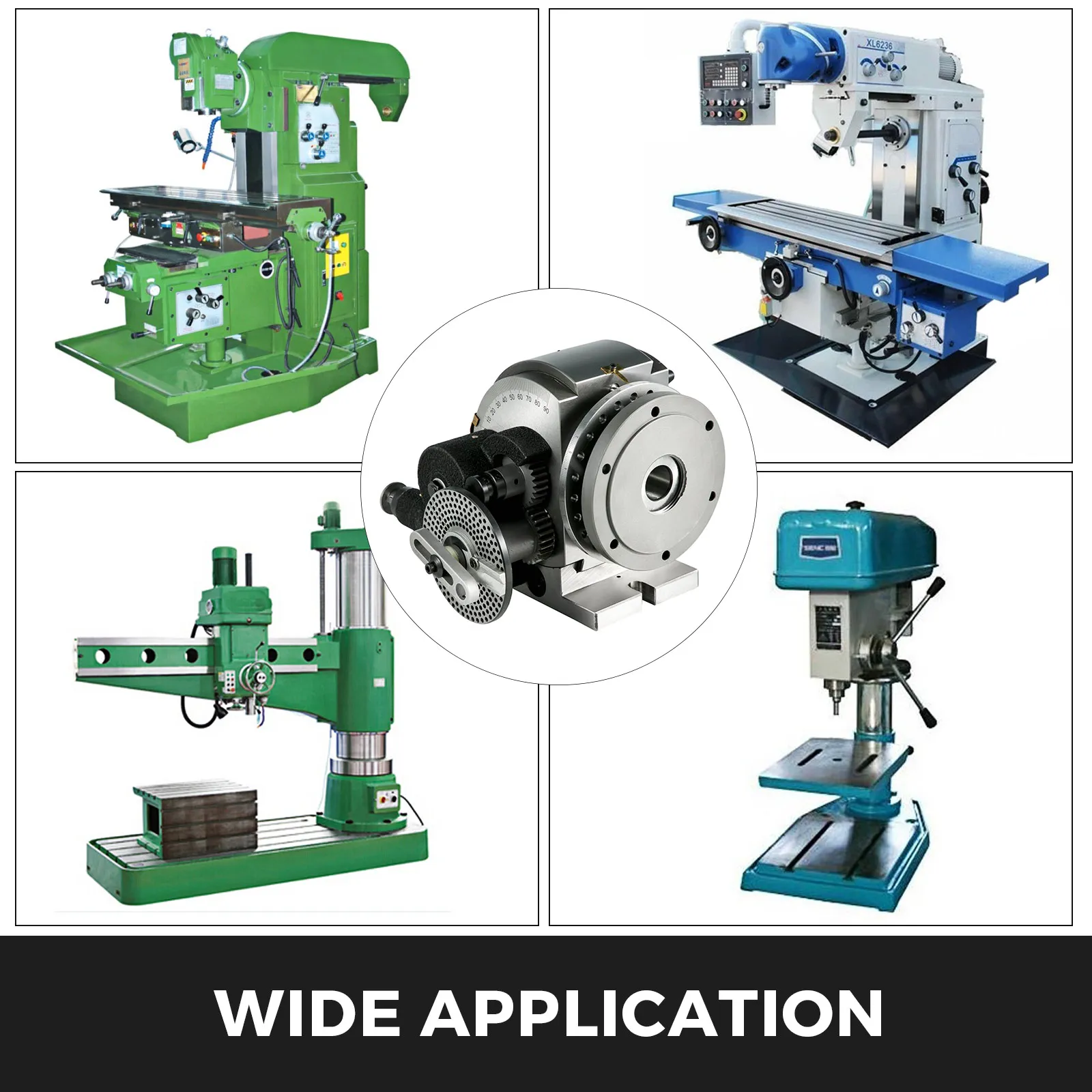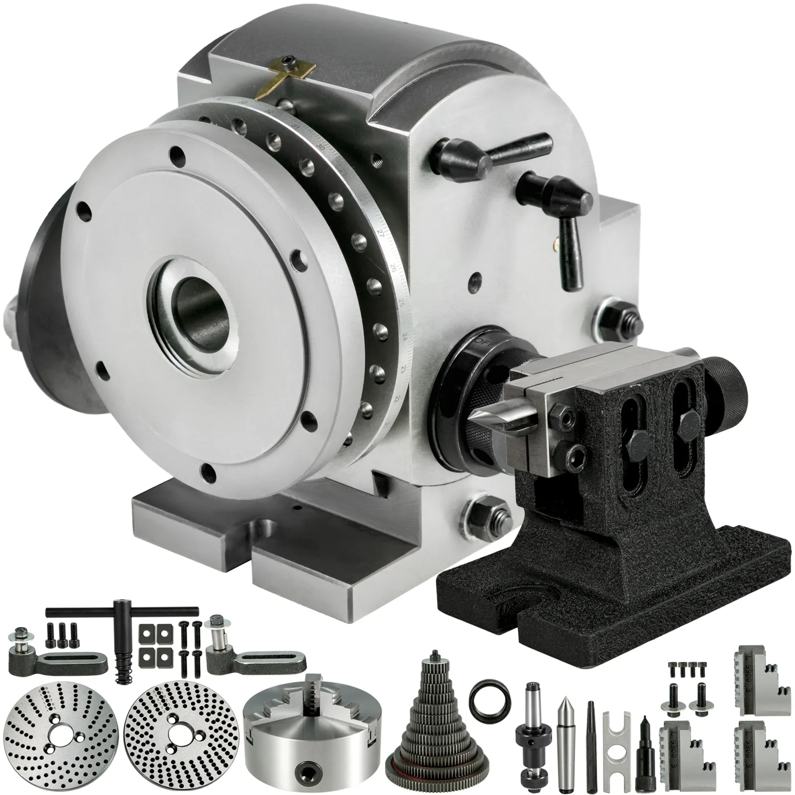 • 【SET DI TESTE DIVISORIE RICCHE】 - Sono fissate 3 piastre di indice delle teste di divisione insieme alla testa di divisione per la divisione indiretta in qualsiasi indice di divisione 2-50, 51-380 eccetto i numeri primi e alcuni altri numeri.