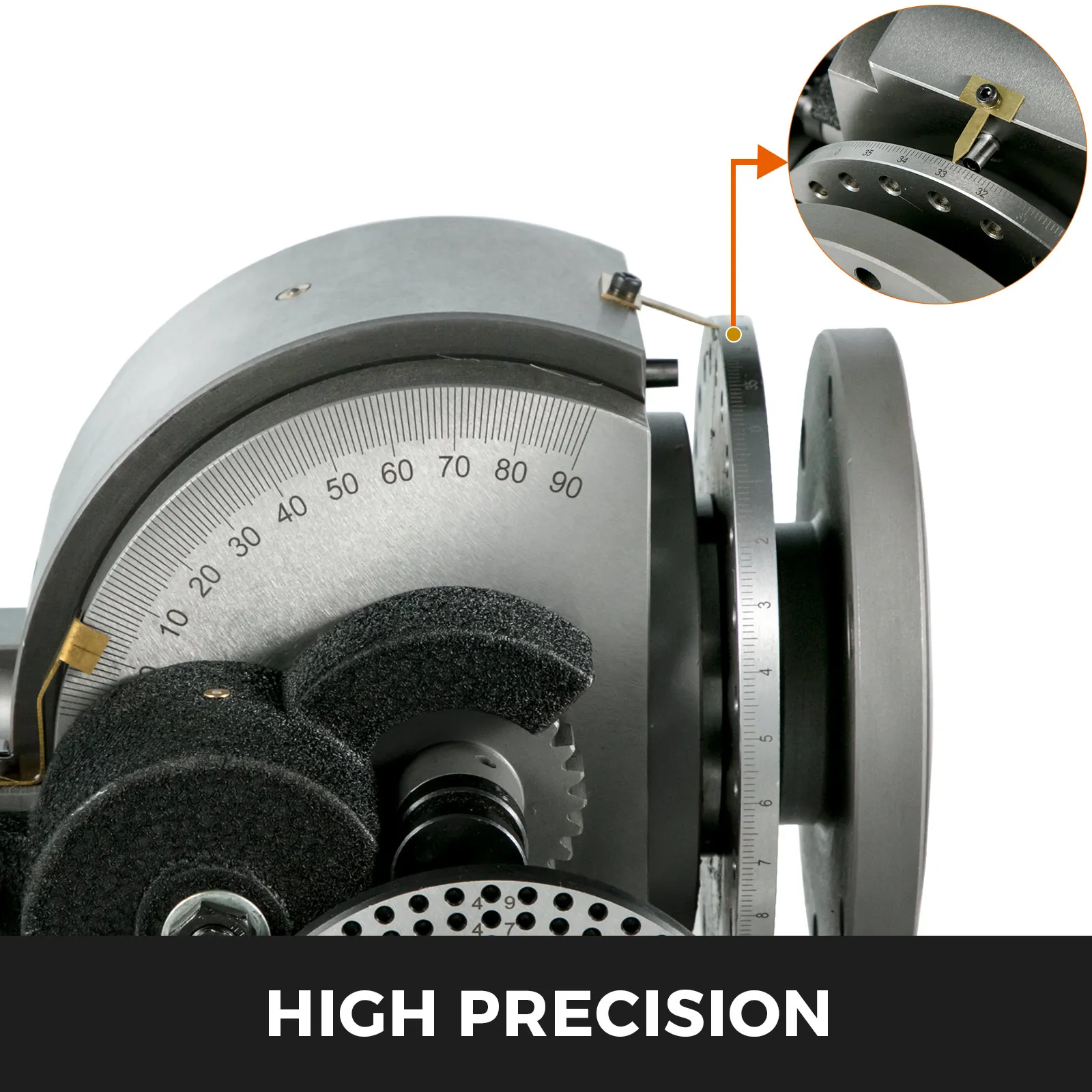 Progettato con una tavola rotante e mandrino di indicizzazione, due quadranti con scale precise consentono di regolare l'angolazione in modo più preciso.