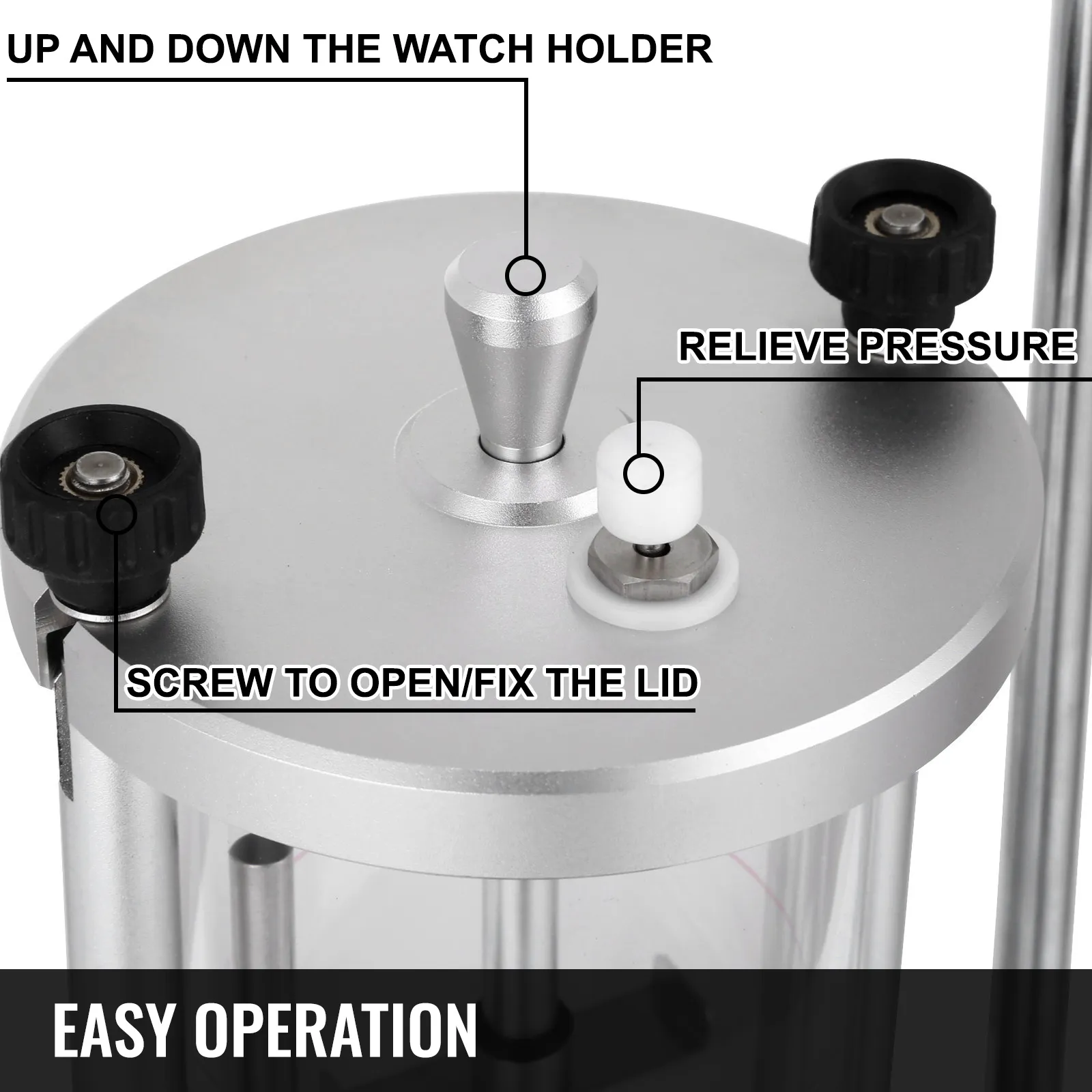 Un orologio deve avere una grande impermeabilità per una grande durata e una lunga durata. Questo tester impermeabile per orologi ti consente di testare l'impermeabilità dei tuoi orologi fino a 6 atmosfere. È possibile testare due orologi contemporaneamente, aumentando l'efficienza. Il risultato del test è facile da osservare.