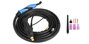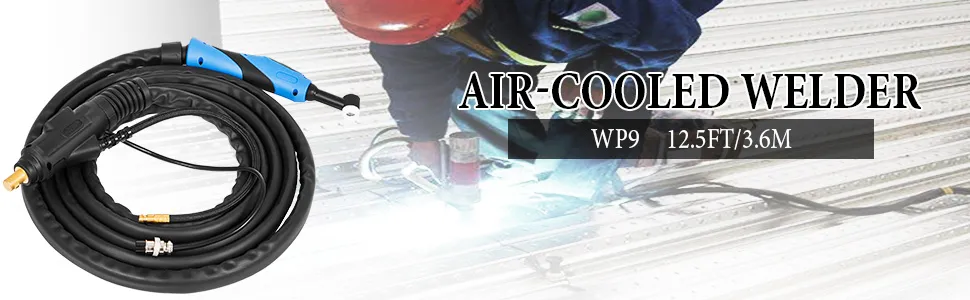 Torcia TIG di alta qualità per pistola, cavo da 12,5 piedi (3,6 m). Con i suoi accessori completi, puoi semplificare l'applicazione in diversi luoghi. R educa al surriscaldamento, riduce tempi di inattività e costi e offre il comfort dell'operatore attraverso un design di raffreddamento unico. Con un pulsante nella torcia per facilitare le operazioni.
