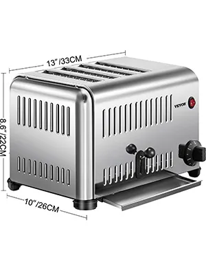 Il nostro tostapane in acciaio inossidabile argento con un aspetto a specchio è perfetto per la cucina di casa, il ristorante, il bar. Il suo corpo resistente ed elegante si adatta bene in ogni caso.