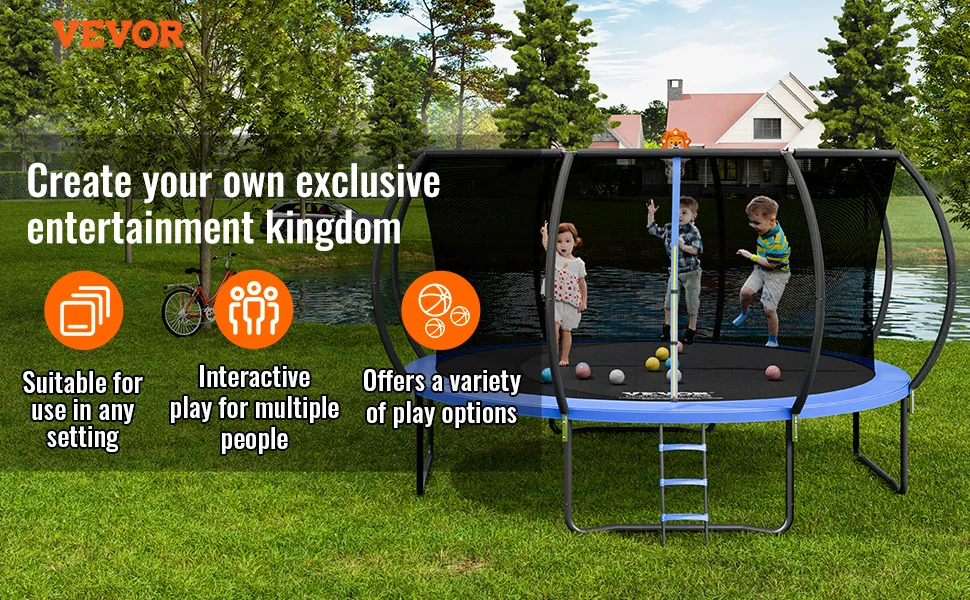 Il trampolino ha un diametro di 14FT. Offre abbastanza spazio. È abbastanza grande per più bambini e adulti. Tutti possono saltare insieme senza affollarsi. Il design spazioso aumenta il divertimento. I bambini possono giocare e rimbalzare liberamente. Anche gli adulti possono unirsi al divertimento. Le dimensioni della macchina la rendono versatile. Puoi goderti riunioni di famiglia e feste. Goditi l'aria aperta con amici e familiari. L'area spaziosa assicura a tutti di divertirsi. È un'aggiunta perfetta a qualsiasi cortile!