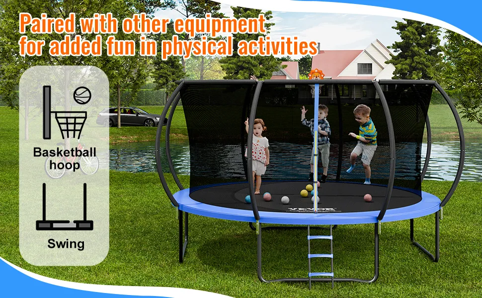 Oltre alla normale funzione di salto, il trampolino per bambini può essere adattato agli interessi dei bambini con attrezzature sportive aggiuntive come canestri da basket e altalene, che aumentano la loro capacità di gioco.