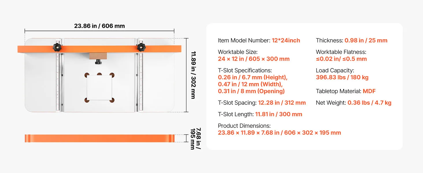 VEVOR Tavolo per Trapano a Colonna 605 x 300 mm, Tavolo per Fresatrice con Guida Regolabile e Blocco di Arresto, Scanalature a T Altamente Compatibili, Piano del Tavolo in MDF, Bilancia Integrata