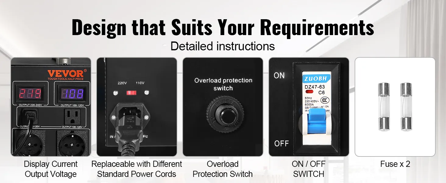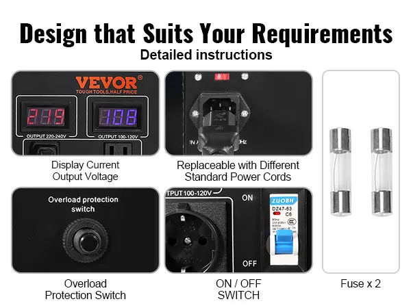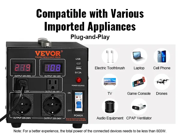 Questo trasformatore di tensione VEVOR fornisce una conversione bidirezionale da 110 V a 220 V, in modo da poter scambiare le tensioni nella maggior parte dei paesi e portare i dispositivi all'estero. Con 6 prese, è possibile utilizzare contemporaneamente fino a 6 dispositivi collegati.