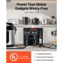 Con una potenza di 2000 VA, questo convertitore step-up offre 2 prese di uscita NEMA 5-15R a 3 pin per gli Stati Uniti, 2 prese di uscita Shucko per l'UE, 1 presa USB e 1 presa Type-C per l'utilizzo simultaneo di diversi dispositivi.