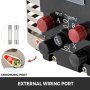 La porta di cablaggio esterna indica chiaramente i controlli del pannello di quattro manopole di regolazione correnti per regolare condizioni da grossolane a fini. Con note di cablaggio per un facile utilizzo.