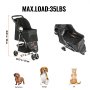 VEVOR Passeggino per Cani 3 Ruote con Parapioggia, Passeggino per Animali Portata 16 kg ca., Passeggino per Animali Domestici con Cestello Portaoggetti, Carrello Pieghevole per Gatti Cani Colore Nero