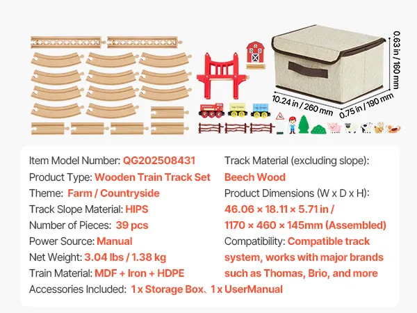 Comodo da riporre: dotato di una scatola portaoggetti per tenere in ordine i pezzi del binario. Aiuta i bambini a sviluppare abitudini di smistamento e organizzazione, mantenendo in ordine il giocattolo del trenino in legno