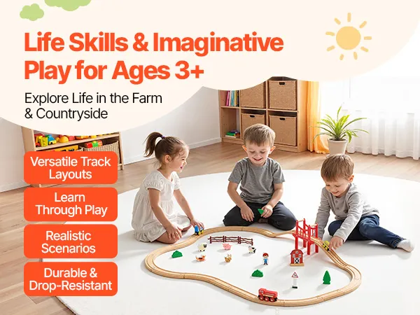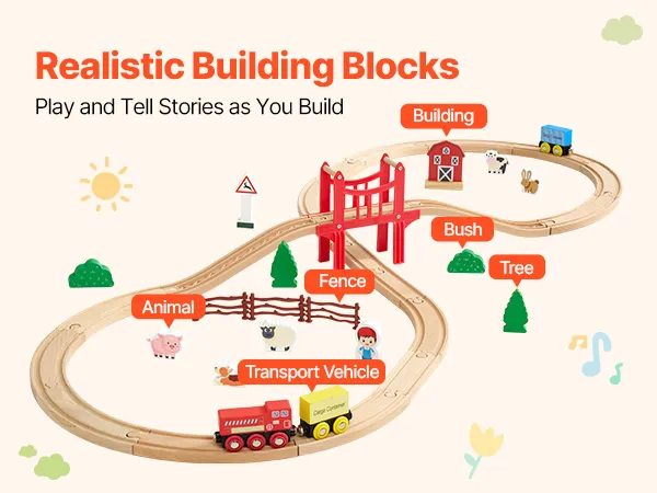 Scelta ideale, gioco coinvolgente: con scene colorate e una confezione presentabile, questo set di gioco ferroviario in legno è ideale per compleanni. Compatibile con la maggior parte degli accessori per binari delle principali marche