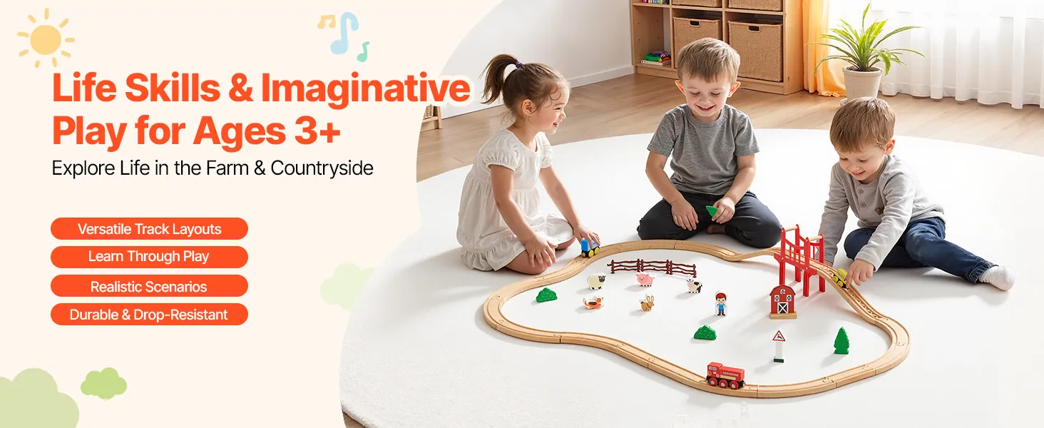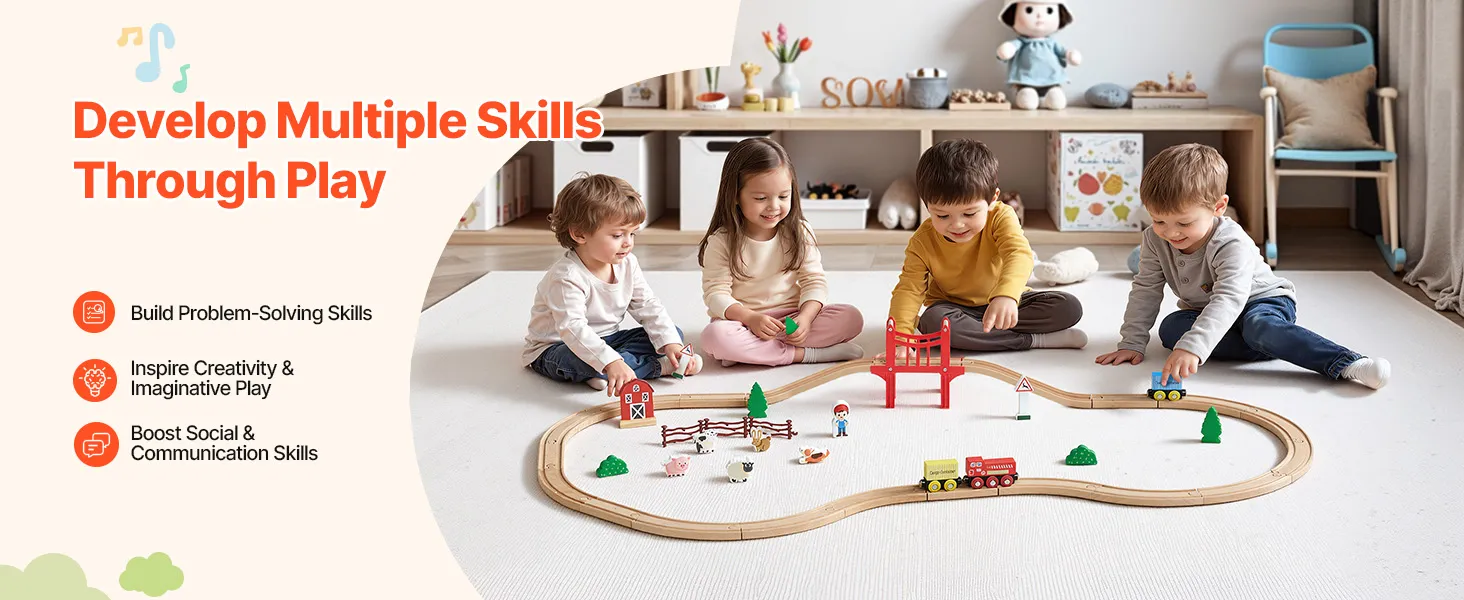 Questo set di trenini in legno è progettato per bambini dai 3 agli 8 anni. I bambini possono esplorare diverse opzioni di assemblaggio, sbloccare una varietà di scenari di gioco e persino giocare in collaborazione con amici o fratelli, promuovendo il lavoro di squadra.