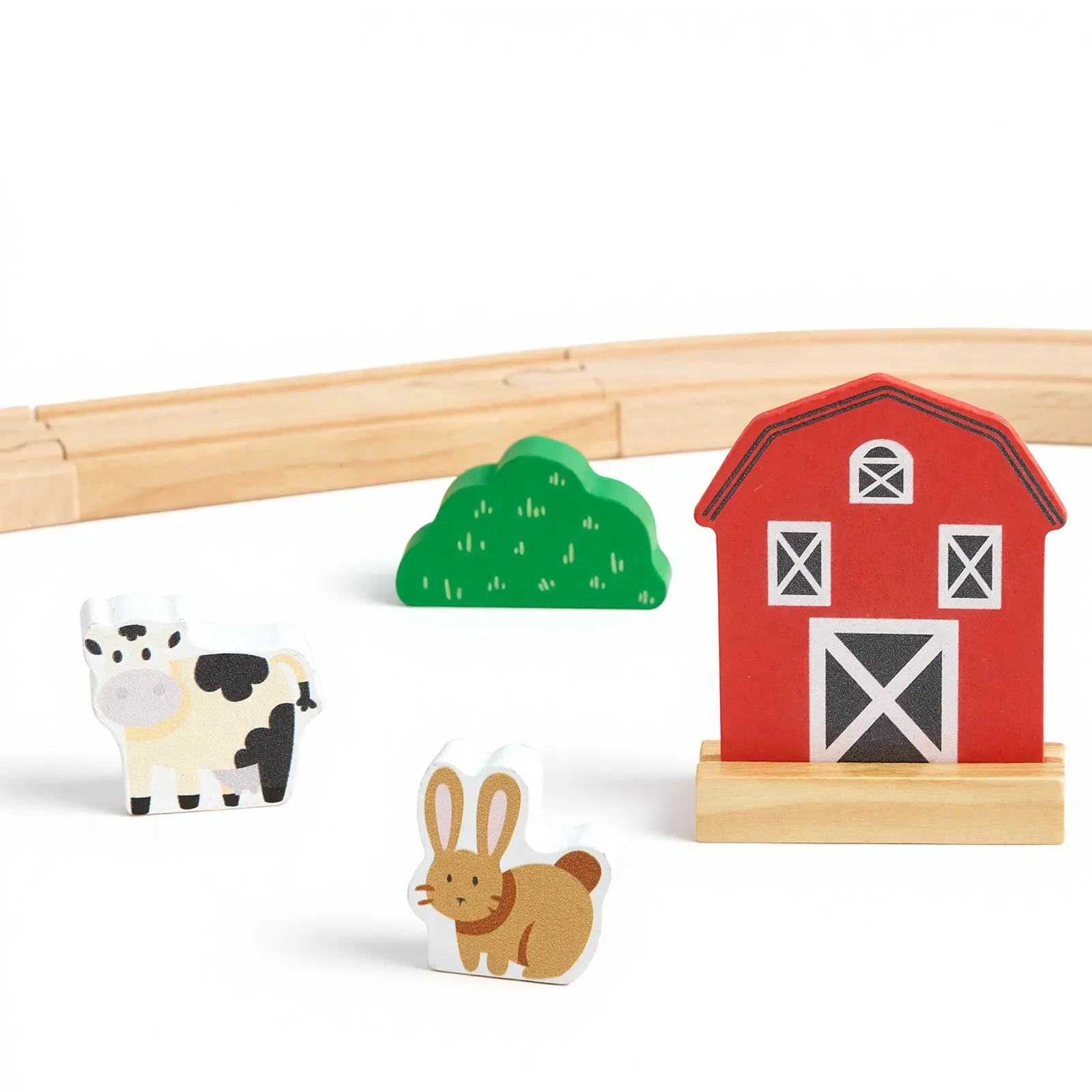 Mini Country Design: questo set di treni in legno presenta un'affascinante ambientazione di campagna in miniatura, con tutti i vagoni collegati magneticamente, che sfrecciano lungo i binari. È un set di gioco educativo che sviluppa la logica