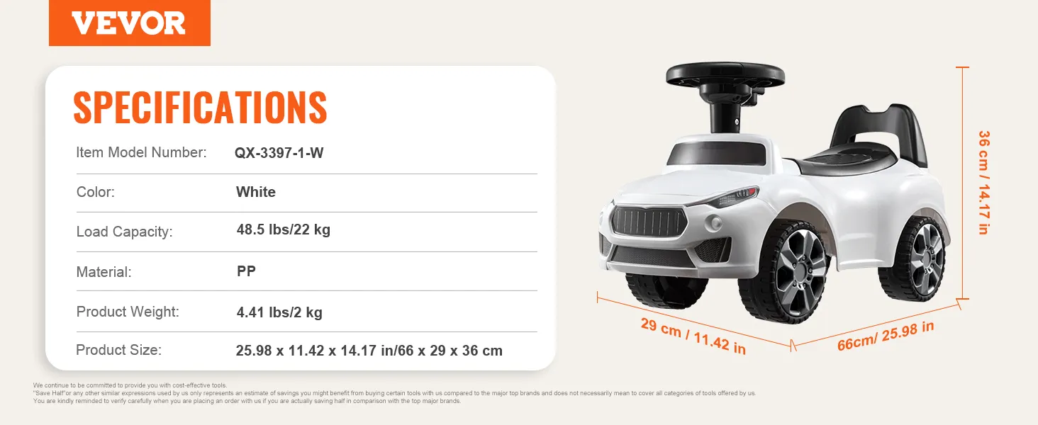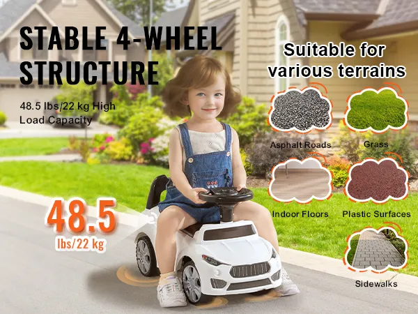 Con una forte capacità di carico di 48,5 libbre/22 kg, questa macchinina per bambini piccoli può sostenere il peso della maggior parte dei bambini piccoli. Consente lunghi periodi di gioco senza preoccuparsi della durata perché è resistente e durevole. Materiali di alta qualità combinati con un design affidabile assicurano che la macchinina soddisfi le esigenze dei bambini attivi, offrendo ore di divertimento e avventura.