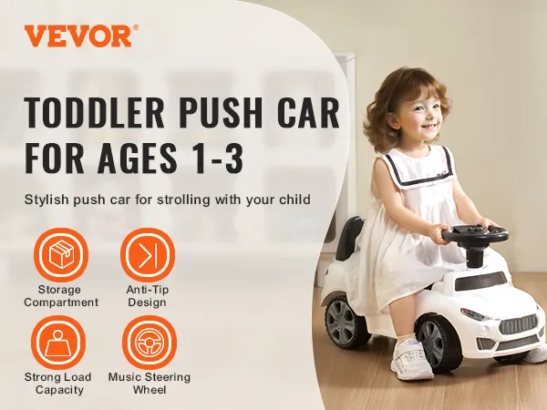 Progettato per i bambini di età compresa tra 1 e 3 anni, questo giro sull'auto a spinta li aiuta a praticare l'equilibrio e rende gli spostamenti facili e divertenti.
