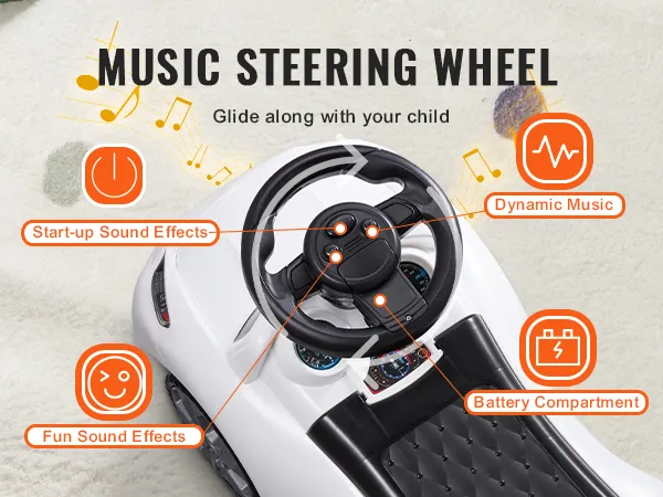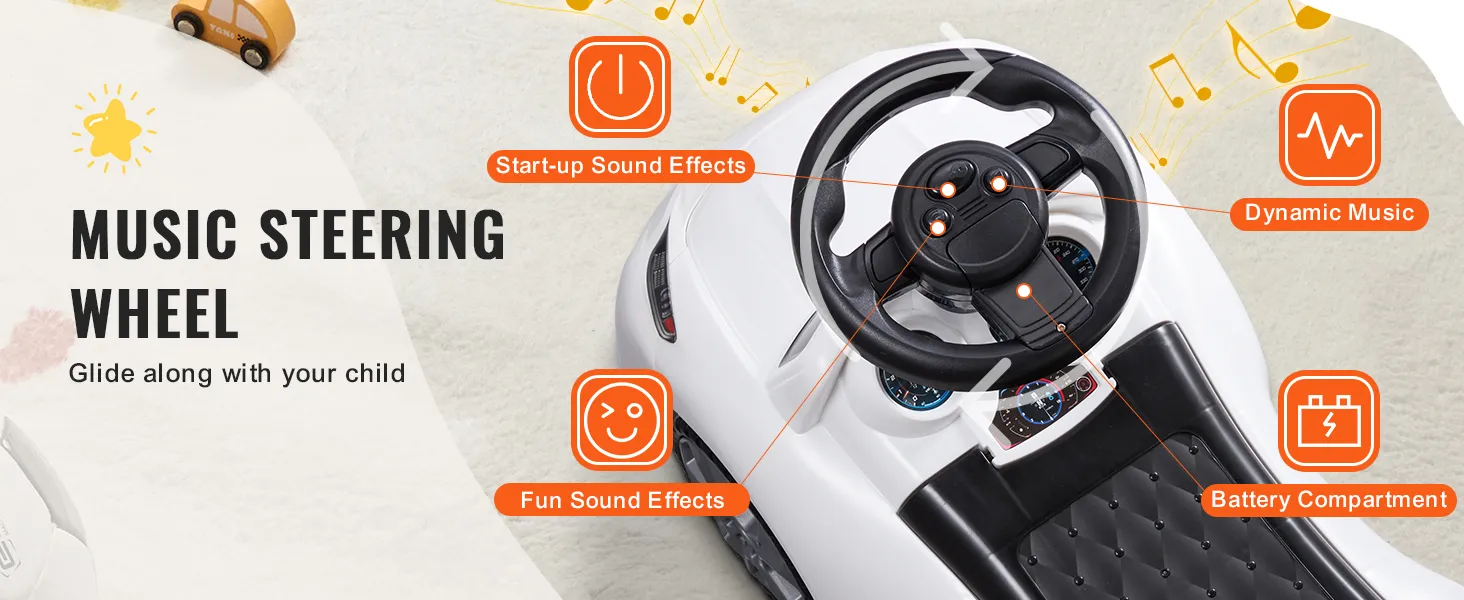 Musica dinamica per l'auto: il nostro bambino cavalcabile sul volante del giocattolo riproduce allegre canzoni per bambini con la semplice pressione di un pulsante, aggiungendo ulteriore gioia al tempo di gioco. Inoltre, il design liscio del volante rende facile e comodo guidare il tuo bambino.