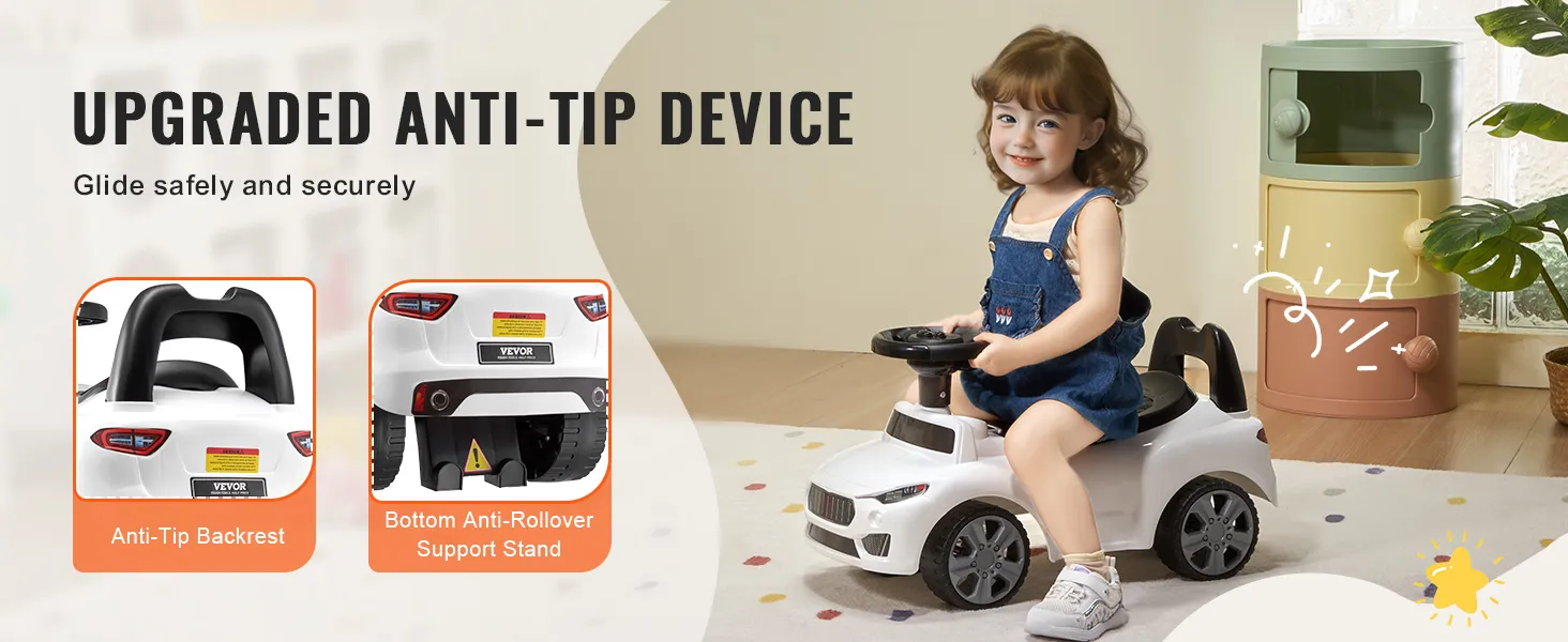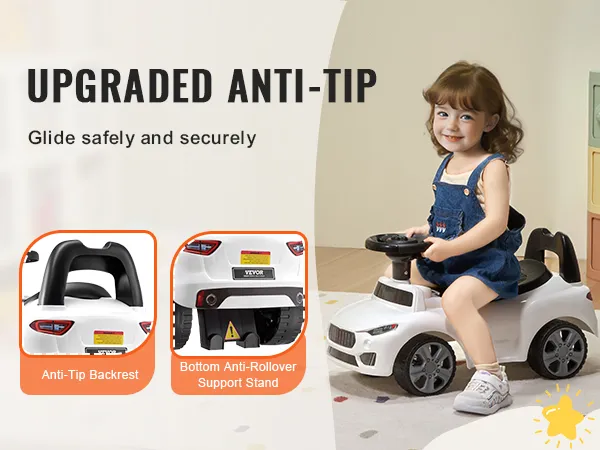 Questa macchina da corsa per bambini è dotata di schienale e barra di supporto antiribaltamento per evitare il ribaltamento, assicurando che il tuo bambino rimanga al sicuro mentre gioca.