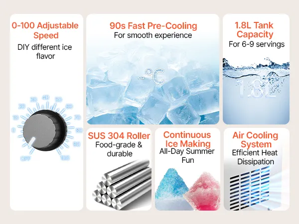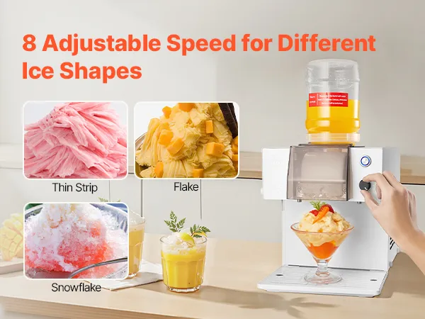 Velocità regolabili da 0 a 100: questa macchina per ghiaccio a fiocco di neve ti consente di creare diverse consistenze come un soffice dolce a forma di fiocco di neve, strisce sottili, ottenendo dessert lisci e rinfrescanti ogni volta