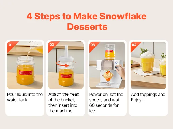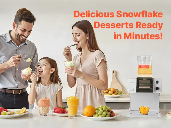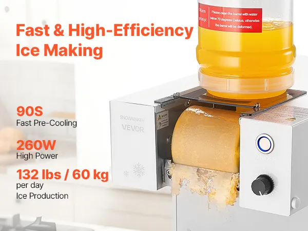 Questa macchina per ghiaccio a forma di fiocco di neve ti permette di creare facilmente gelati e bevande cremose e soffici a casa, utilizzando acqua, latte, succhi di frutta, limonata e altro ancora. È ideale per l'uso in famiglia, per piccole riunioni o per intrattenere gli amici, mentre il suo design compatto e intuitivo rende la preparazione di rinfrescanti prelibatezze divertente e pratica.