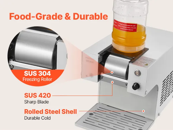 Resistente e adatto agli alimenti: la nostra macchina per il ghiaccio a forma di fiocco di neve è realizzata con un corpo in acciaio laminato a freddo di alta qualità, un rullo di raffreddamento SUS304 adatto agli alimenti