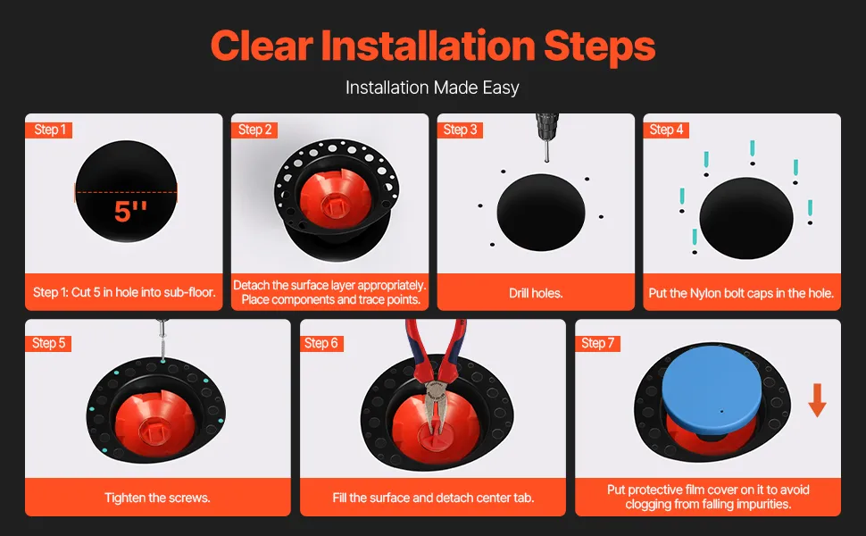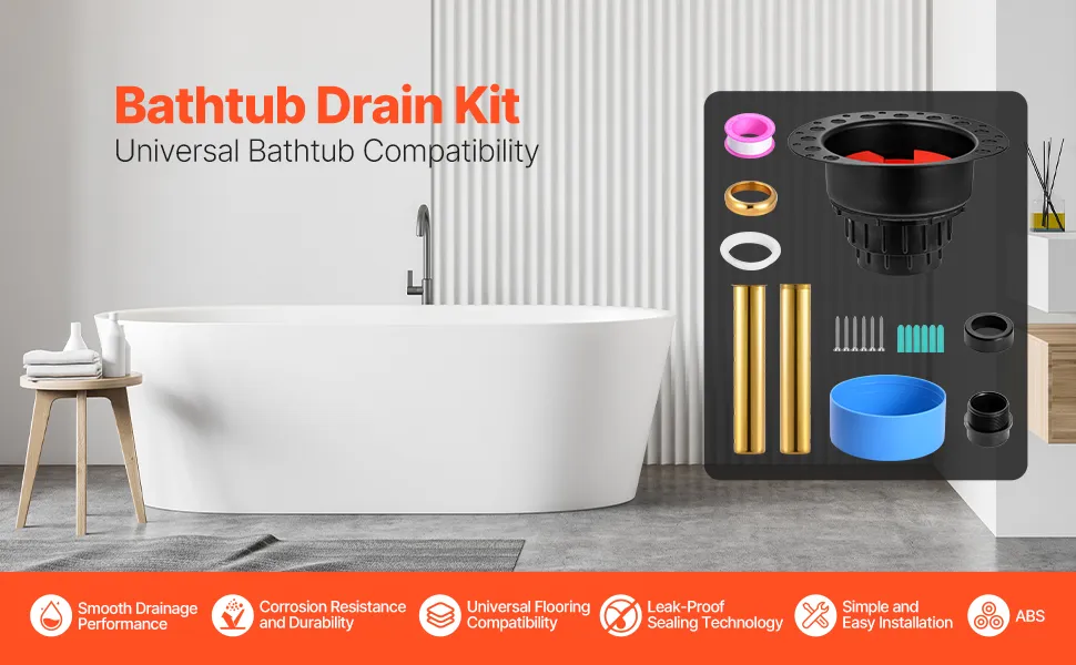 Drenaggio regolare: il kit di rivestimento della vasca da bagno incorporato si fissa saldamente tra la base e le piastrelle della superficie, fornendo un drenaggio stabile e affidabile. Il parapolvere protegge il tubo di scarico durante la costruzione e consente molteplici test della pressione dell'aria per garantire prestazioni adeguate.