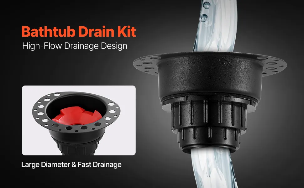 Il kit guscio vasca da bagno di grande diametro consente un rapido flusso d'acqua e la guarnizione in poliestere garantisce una tenuta sicura per bloccare gli odori ed evitare perdite.