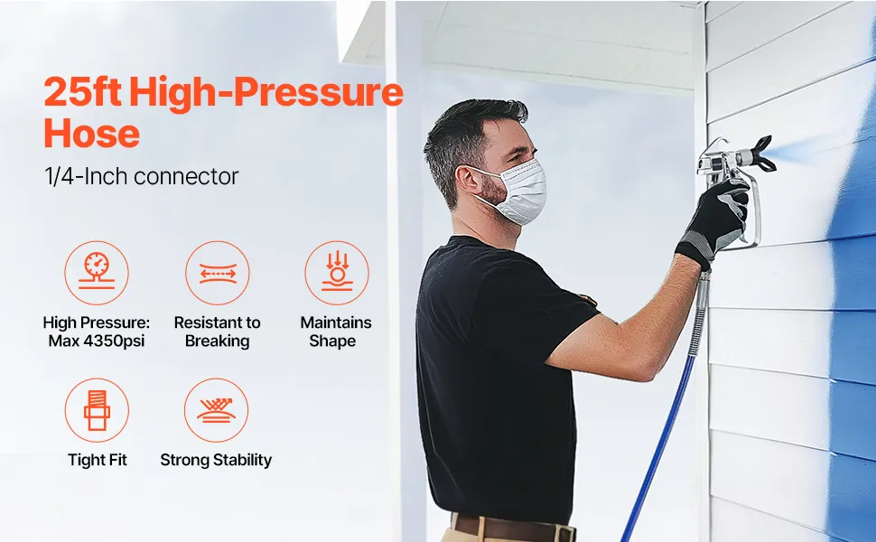 Compatibilità: il nostro tubo flessibile per spruzzatore di vernice airless misura 25 piedi di lunghezza, con un connettore standard da 1/4 di pollice/6,35 mm. Compatibile con una varietà di marche di pistole a spruzzo, il che lo rende ideale sia per gli utenti domestici che per i professionisti