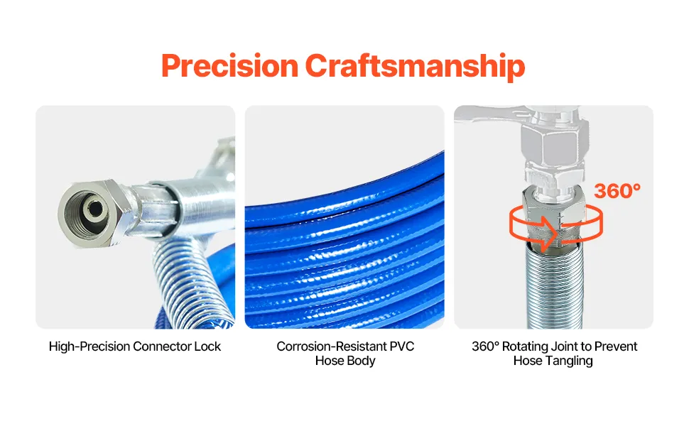 Ampiamente adattabile, questo tubo per spruzzatore di vernice può essere utilizzato con molti marchi e modelli diversi di attrezzature. Che si tratti di una pompa dell'acqua, un compressore d'aria o altri dispositivi di trasferimento di fluidi, offre una facile compatibilità.