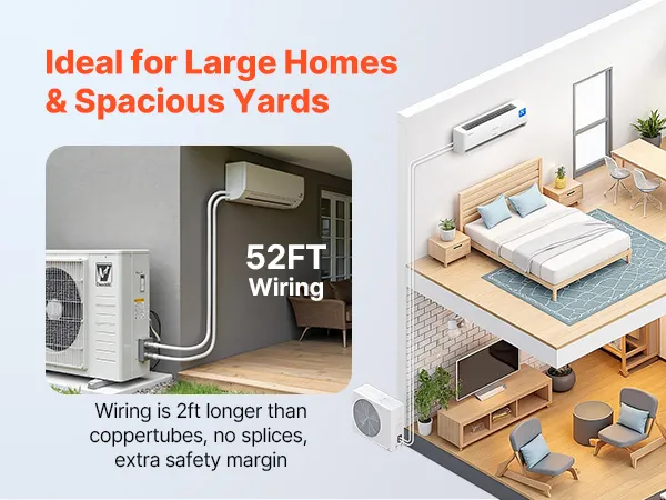 Cablaggio extra lungo da 16 metri: 60 cm lungo dei cavi in rame non richiede giunzioni, riduce i punti di perdita. Ideale per ristrutturazioni di garage e installazioni di case a più piani, dove un set di mini cavi split offre una portata maggiore